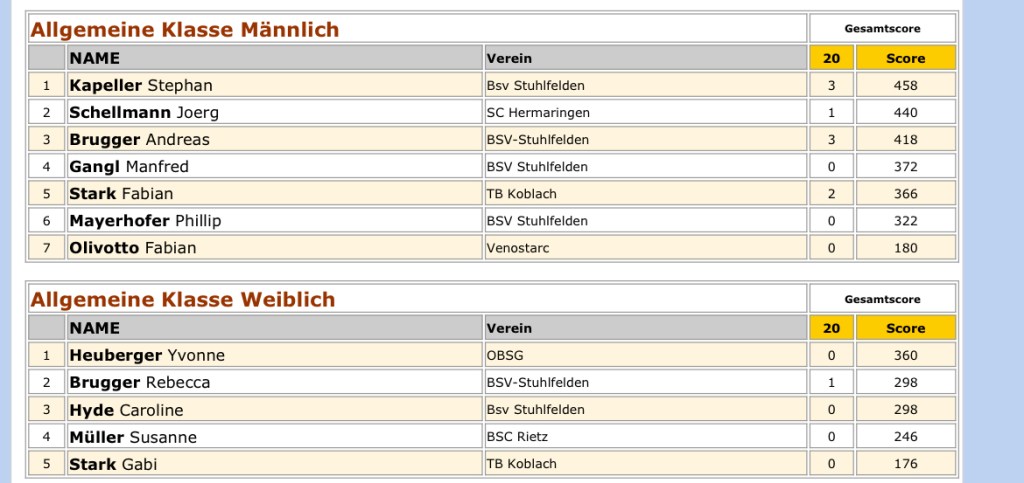 Gruber Christian kann sich über Platz 2 freuen, Hyde Caro über Platz 4, Fritz Hans über Platz 5 knapp vor Gandler Werner über Platz 6, Brugger Rebecca über Platz 12, Gandler Alexander und Brugger Andreas über Platz 17.