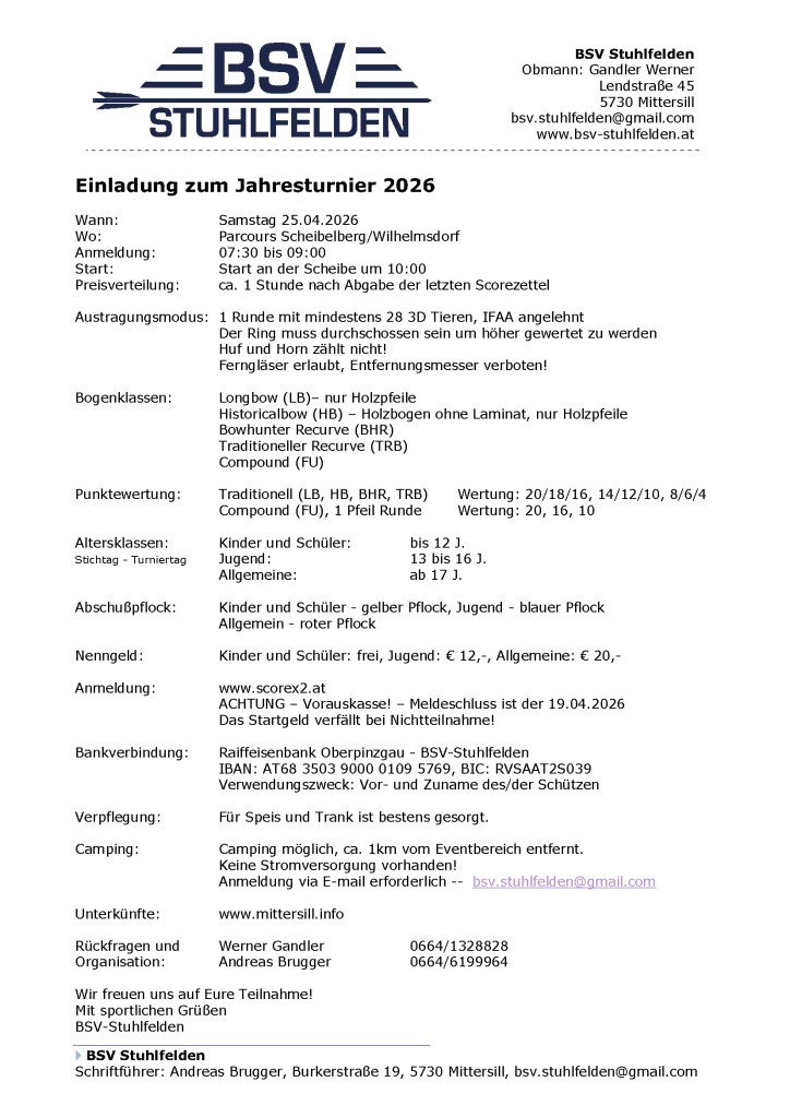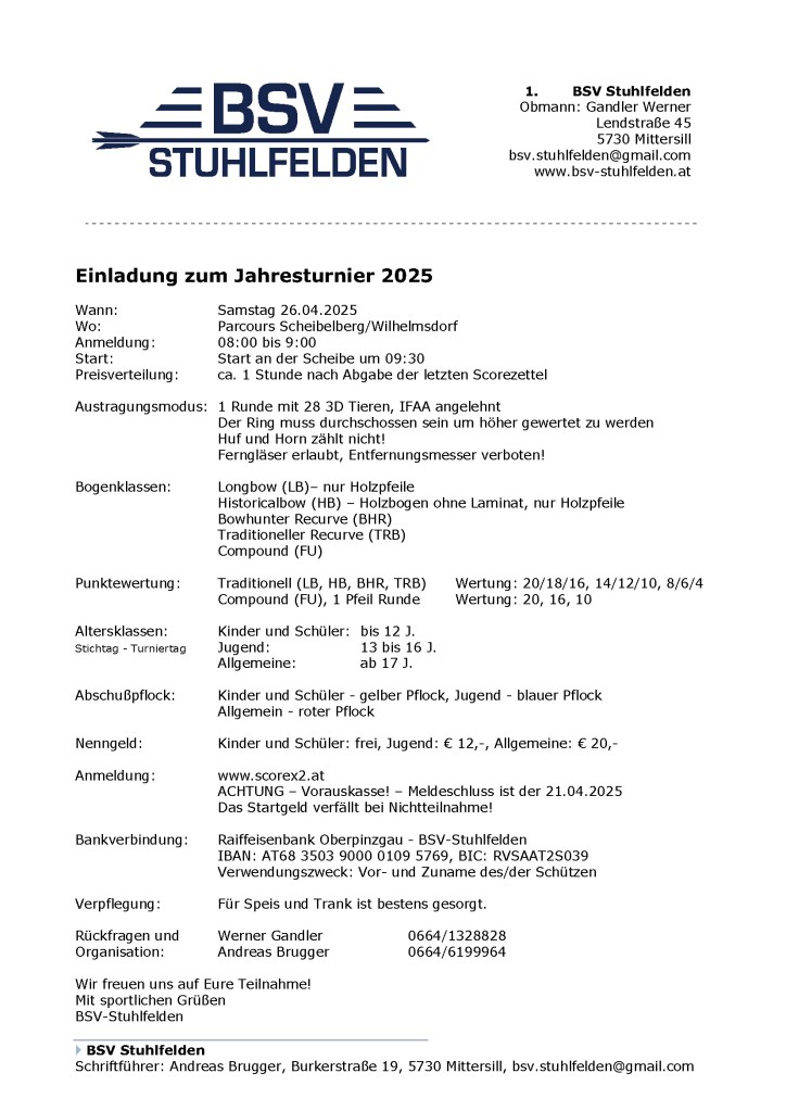 Wir laden recht herzlich zu unserem Jahresturnier am 25.04.2026